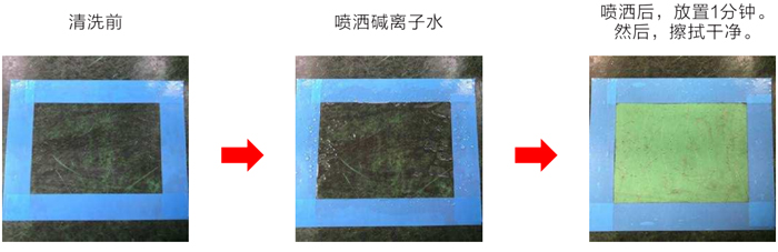 ◎油污清洗效果事例(試驗物:加工現(xiàn)場被切屑液污染的地面)